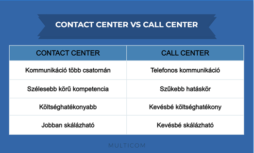 Míg a call centerek főként telefonrendszerekre támaszkodnak, egy contact center kihasználja a rengeteg (főként online) csatornát, amelyeket az ügyfelek manapság a vállalkozásokkal való kapcsolattartáshoz is használnak.