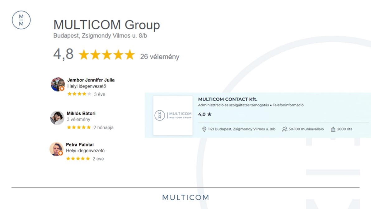 A szolgáltatást már használó személyek gyakran értékelik az adott céget, így segíthetnek eldönteni, hogy a vállalat alkalmas lesz-e neked vagy sem. Olvasd át, mit írtak az ügyfelek és a munkatársak a cégről és a szolgáltatásokról, majd röviden elemezd, hogy a call centerrel kapcsolatos vélemények megfelelnek-e az elvárásaidnak.
